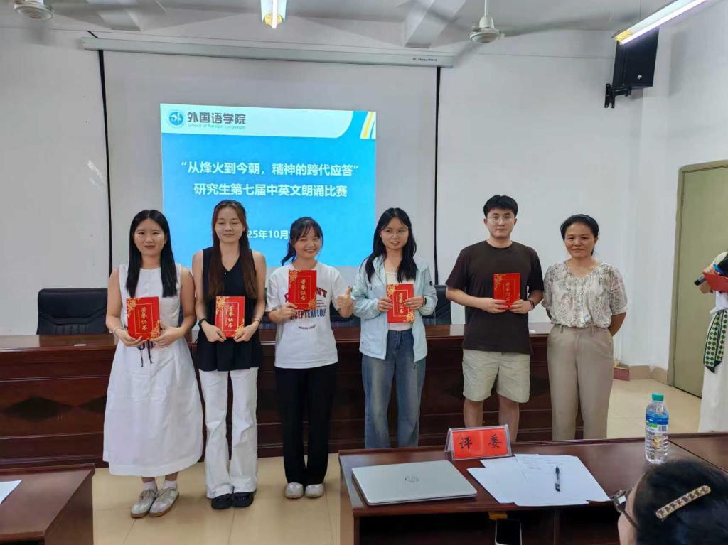 This recitation contest not only provided a platform for graduate students to showcase talents and exchange ideas but also served as a bridge connecting historical memory with youthful missions through the theme of "cross-generational response." Moving forward, the School of Foreign Languages will continue leveraging such cultural events to deepen the integration of foreign language and Chinese language education, empowering students to innovate through inheritance and grow through expression, thereby injecting vitality into cultivating compound talents with both patriotic spirit and global vision. (Photos & Text by YAN Lingwei)